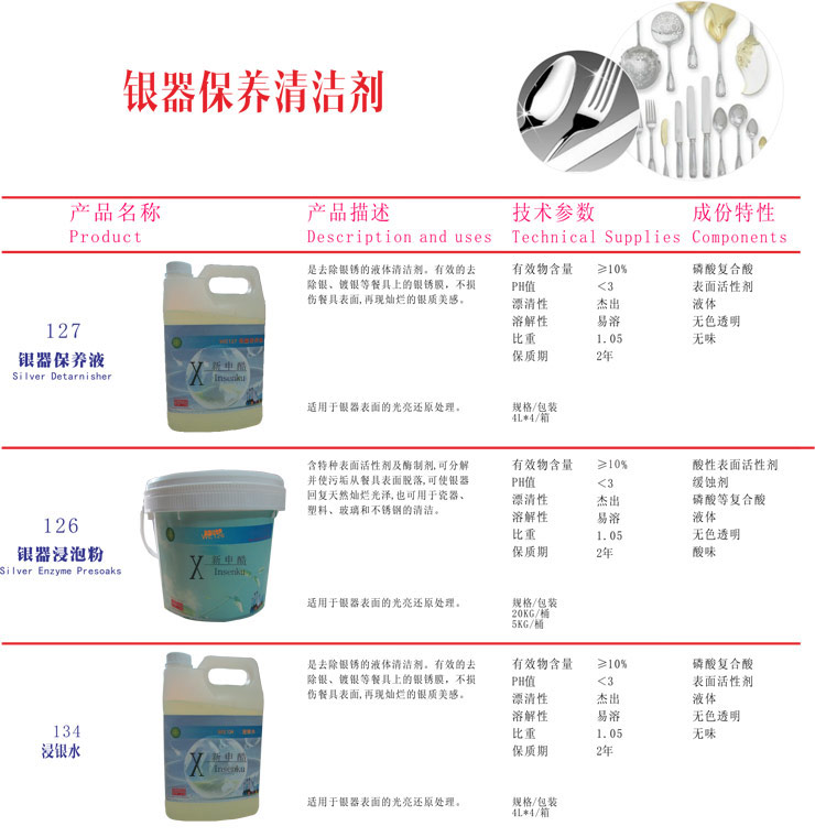 | WE134 浸銀水 | WE127 銀器保養液 | WE1101 烤爐凈 |